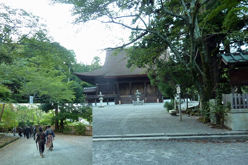 一切経藏裏の竹林で撮影された現場は、血みどろの決戦が大勢の人たち(約90名)で行われ、竹・樹木や地面につけられた多くの血のりも消され、また散乱していた台車、板材、丸棒なども綺麗に片付き、大勢の人たちで踏まれ固まった地面だけが残る静かな竹林に戻っていた。だた、地面をよくみると当日雪景色するため雪の粉が撒かれたが、その粉が少しであるが残っていた。