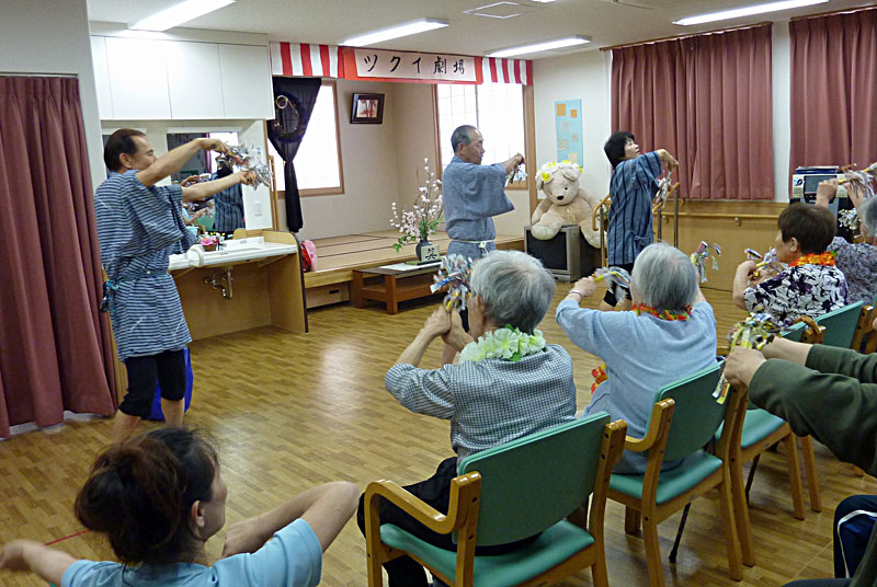 今回も初めてこの施設に訪問したが観客や職員の皆さんに大変喜んでもらえたことはよかった。今回もフラダンスグループと一緒のボランティア活動だった。次は8月19日(日)の夏祭りでのボランティアであるが、フラダンスグループは来れないとのことで、我々のグループでやることになる。新しい出し物は、「南京玉簾」と「舞踊」の予定。