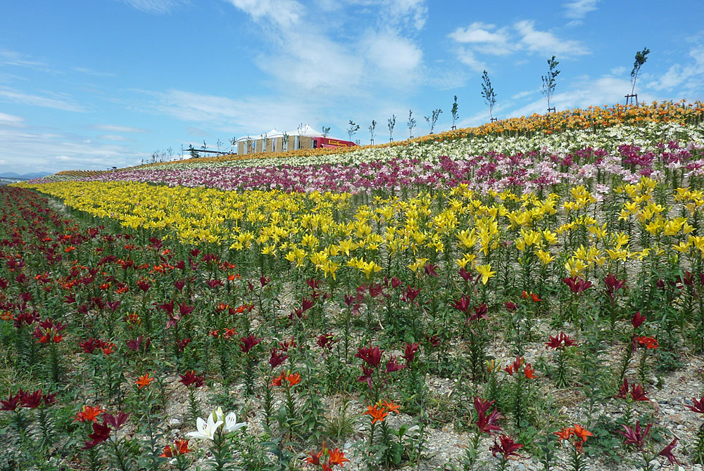 ここは大阪湾を臨む最高のロケーションにゆり畑が作られ、200万輪のゆりが植えられている。 ゆり畑はミックスゾーン、ジグザグゾーン、オレンジエリア、イエローエリア、ピンクエリアなど9つのゾーンに分かれてゆりが綺麗に咲き乱れていた。ここ暫く雨が降らなかったこともあり、少し元気のないゆりも見られたが、それなりに楽しめた。(*^_^*)