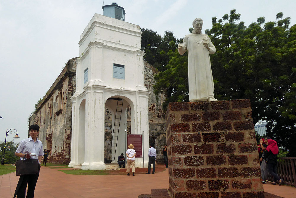 12時半頃に着き、まず昼食を取ってから約2時間半、世界遺産登録の街並み・オランダ植民地時代(1753年)に建設されたキリスト教の教会・当時の役所(現在は博物館)などの遺跡を徒歩にて見物した。 また、ポルトガル軍によって1521年に建てられた教会には、日本でもお馴染みのセント・フランシスコ・ザビエルが1545~1552年の期間に定期的に、この教会を訪れ布教活動を行っていた。中国の布教活動中、熱病に冒され殉教した後、その聖骸が9ヶ月の間この教会で安置されていたとのこと、その安置所も見物。(中の写真)