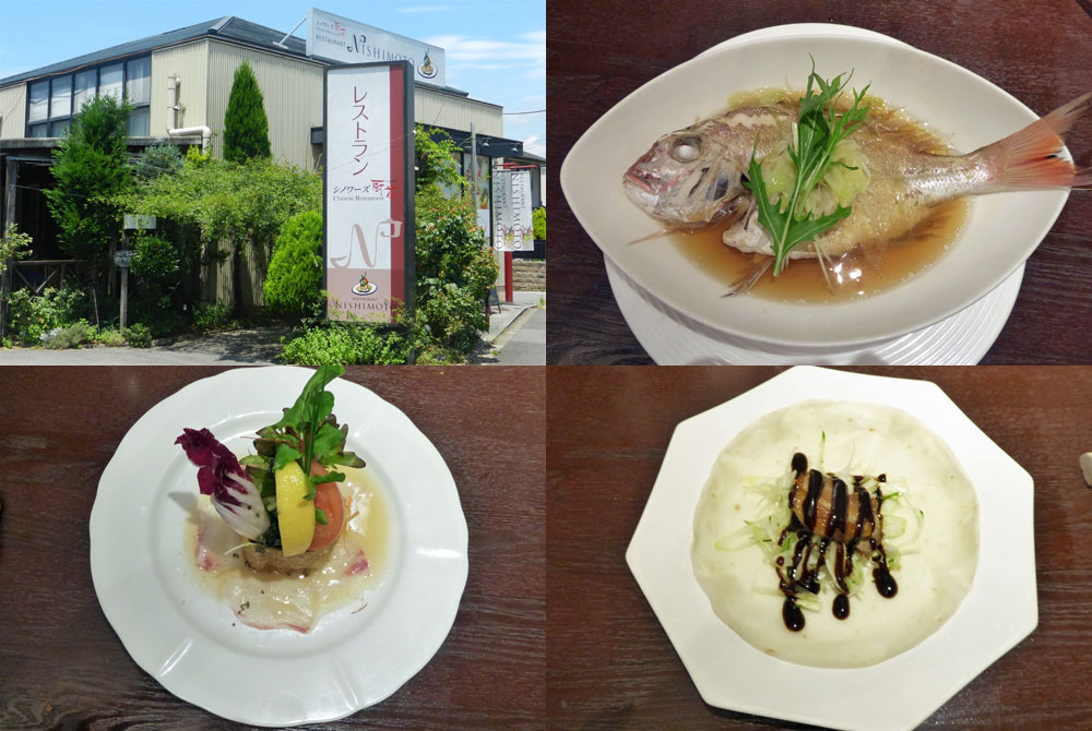 今回は3000円コースの創作料理を味わったが美味しかったなぁ~。 少し不便なところであるが結構沢山のお客さんで繁盛しいていた。写真はレストラン「西本」の外観と創作料理の一部。