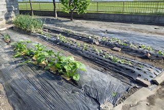 玉ねぎの収穫地にはバイオの鳴門金時の苗を25本植えた。毎年同じ畑地に植えているのであまり収穫が期待できないかもしれないが…。