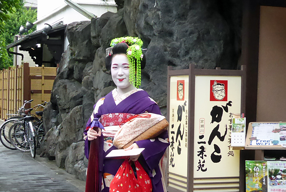 がんこ高瀬川二条苑で『舞妓さんに出会える日』(6/8)があり、久しぶりに立ち寄って見てきた。5月末に富津愈(とみつゆ)さんが舞妓から芸妓さんになり、今月からか舞妓・富千英(とみちえ)さんが来られていた。いつものように3曲の舞の披露と舞妓さんの紹介、質問コーナ、記念写真があった。今月も『舞妓さんに出会える日』が3日あるが、この舞妓・富千英さんではないかと思われる。大阪出身で舞妓になって間がない可愛い舞妓さんだった。