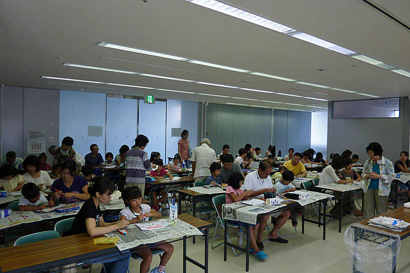 今回も低学年の子ども定員30名と父兄19名が参加。前回に引き続き大盛況であった。「SAひらかた」のメンバー12名も参加、作り方の指導・支援をし、一緒に楽しんだ。スタッフが下準備したこと、父兄の援助で思っていた以上に早く終わった。次回は、10月に15cmの紙皿2枚を使っての「メリーゴーランド」づくりを予定している。