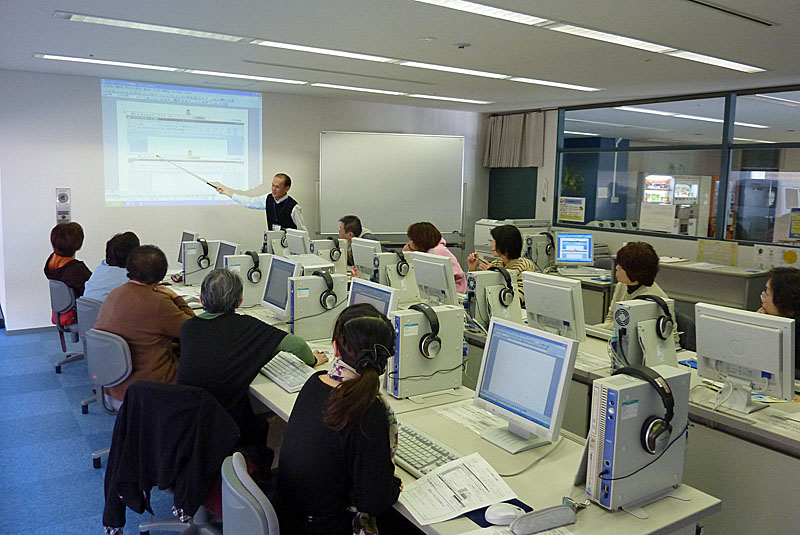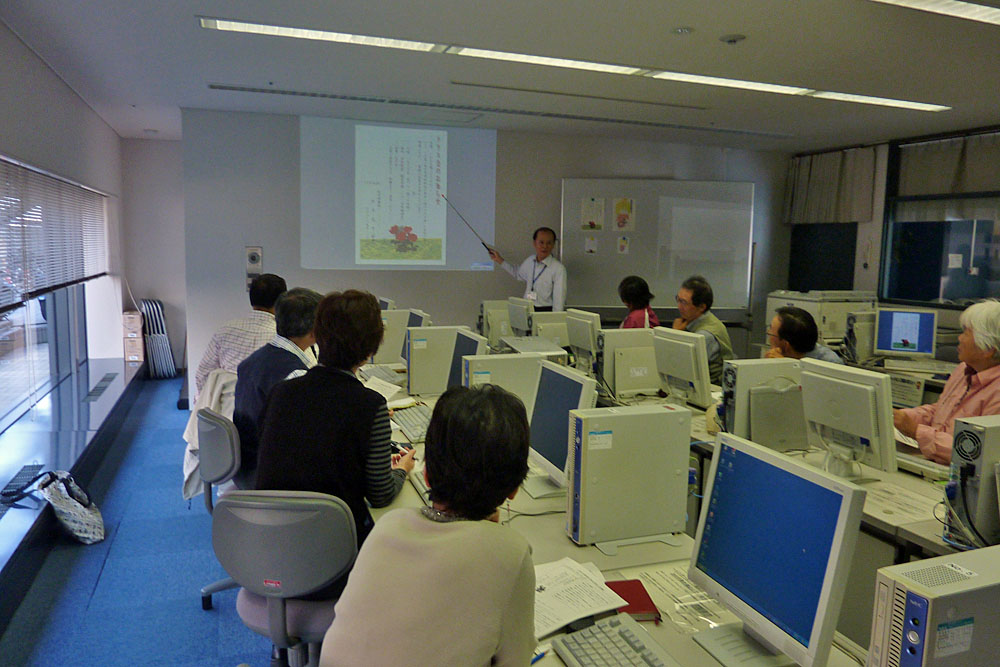 枚方市の生涯学習情報プラザで、超初心者を対象にパソコンミニ体験をスタートして、早や5年が経過した。目的はパソコンに触れたことのない市民を対象に、パソコンに慣れてもらい使える切っ掛けにしてもらうためで、この5年間で多くの市民の人が受講した。現在では年賀状、新聞、チラシ、住所録などを作成されて頑張っている人が多い。当然、受講料は無料である。