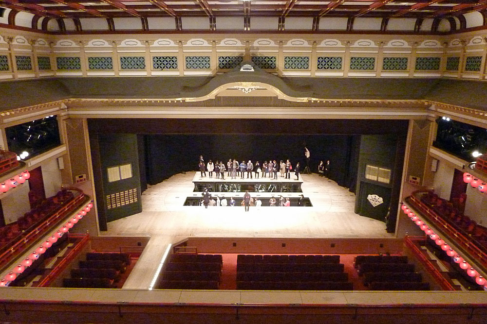 3月16日から4月16日まで京都南座にて「春の特別舞台体験」が行われており参加。 まず参加者は、歌舞伎役者になったつもり?で、「チャリン!」と揚幕を引く音ともに「花道」を歩いて舞台へ、舞台の中央に立って2階や3階の客席を眺めるが距離が近く感じてすごい眺め。 続いて「廻り舞台」にて一回転、[迫り(せり)](舞台の床の一部を切り抜き、俳優や大道具などを床の上にのせて上下させる装置)では、上下交互に動く2つの迫りに分かれて乗り、上に上がるとほぼ2階席と同じようになり眺めもすごいものだった。また、今回はじめて「チョンパー」の体験も、これは歌舞伎舞踊の照明技法のひとつで、舞台と客席を暗くしておいて、拍子木の音の合図で舞台と客席の照明を一斉に明るくする照明の演出効果のこと、参加者全員が舞台中央横一列に立っての初体験で、ライトがパッーと点灯の瞬間は全員「わぁ~」と感嘆の声が・・・・・。 約30分という短い舞台体験だったが、ちょっとした歌舞伎役者の気分を味わえた。 この体験と同時に『歌舞伎ミュージアム 南座2013』が開催され、「文化財としての南座」を観覧、南座のもつ歌舞伎劇場特有の構造や館内に点在する美しい意匠が随所にあり、登録有形文化財としての南座の魅力を感じた。 また、歳末の「吉例顔見世興行」で古式ゆかしく劇場正面に掲げられる「まねき看板」や「芝居錦絵」の実物なども特別に館内に展示され見物した。 その他には歌舞伎を盛り立てる【小道具】展示体験では、歌舞伎ならではの小道具を見て、触って、歌舞伎を身近に感じることができたし、歌舞伎の【乗り物】展示体験では 歌舞伎に登場するお馴染みの「乗り物」(馬、小舟など)に乗っての体験もできた。 ![]() |