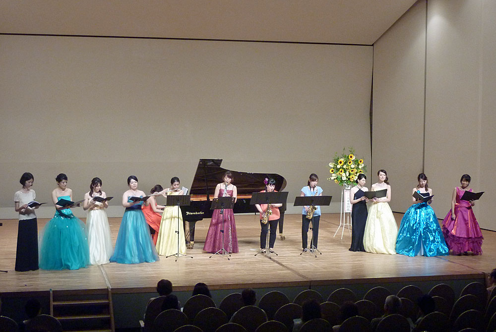 今回、高槻市の女性コーラス「今城エコー」(団員43名)の協助出演もあり、華やかな演奏会でもあった。